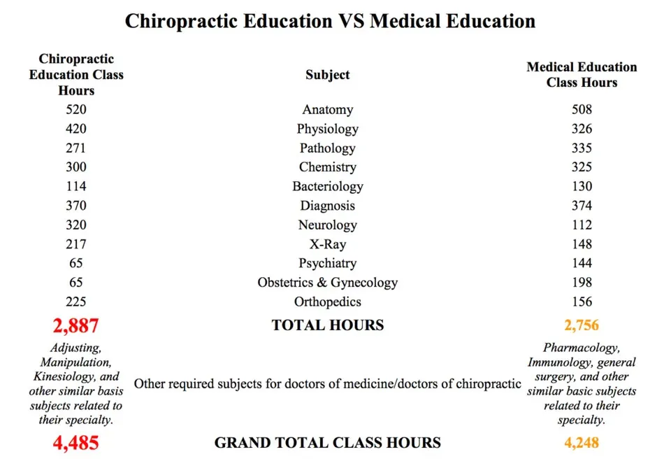 En Estados Unidos el coste de la titulación, tiene un precio medio de 100 mil dólares. El ejercicio de la profesión esta integrado en el sistema sanitario y tienen acceso a hospitales e investigación clínica. La seguridad social reembolsa los gastos de quiropráctica y mantiene un estatus único siendo el sistema curativo de mayor difusión del país. El censo norteamericano publicó en 2019 la existencia de 60.000 quiroprácticos, repartidos por los 50 estados a los que 35 millones de personas acuden anualmente.